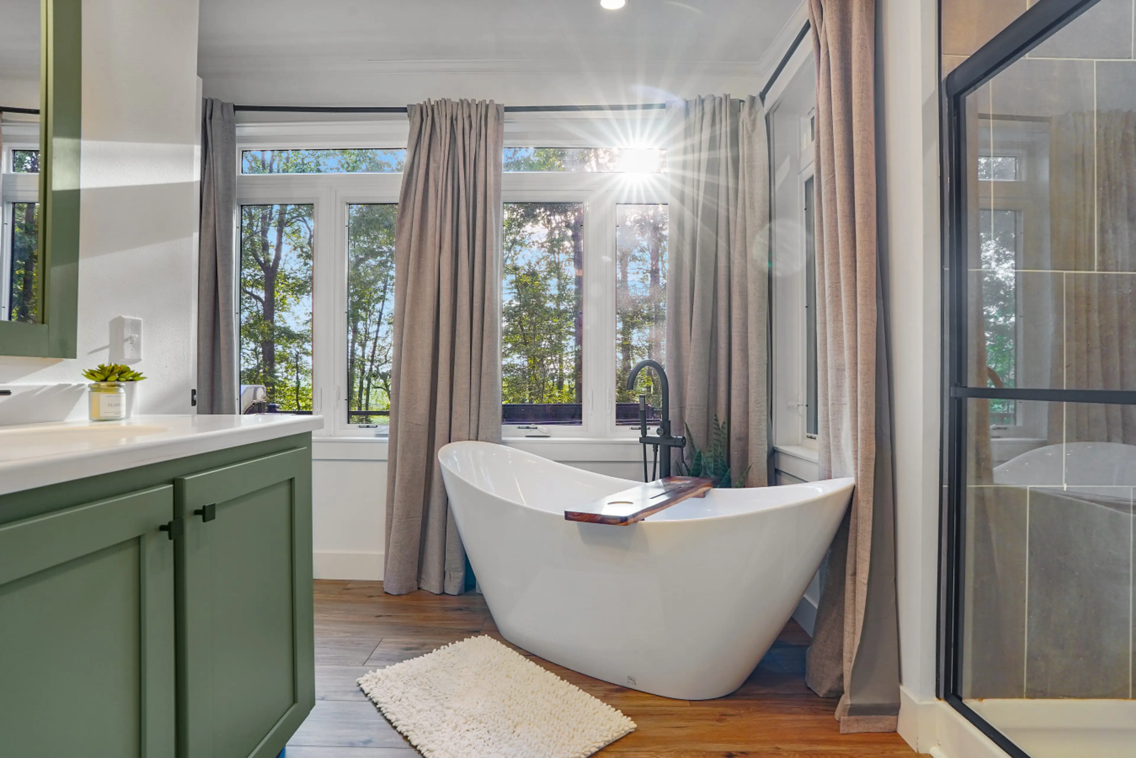 Welcome to your cozy woodland retreat! Nestled in a serene forest, this charming one-bedroom Airbnb offers a perfect blend of style and tranquility. Designed with a modern aesthetic, the space features chic furnishings, warm modern accents, and large windows that invite natural light and breathtakin...